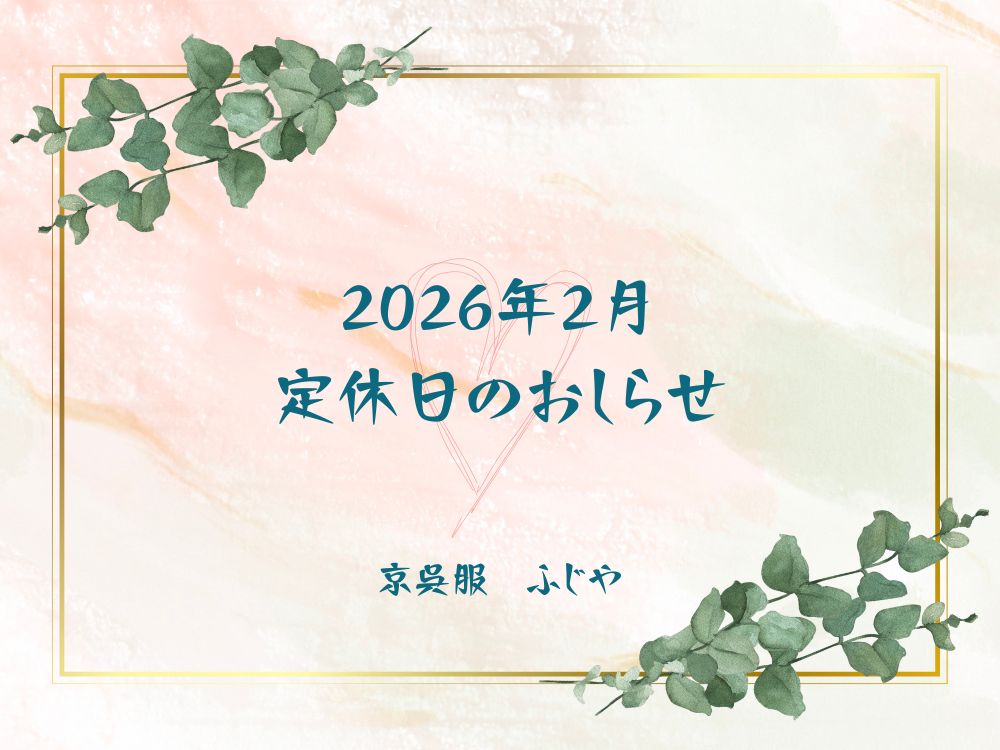 「京呉服 ふじや」2月の定休日となります。 2月4日(水)・5日(木) 2月11日(水)・12日(木) 2月18日(水)・19日(木) 2月25日(水)・26日(木) ご来店をご予定のお客様はお間違えの無いようにお気を付 […] -