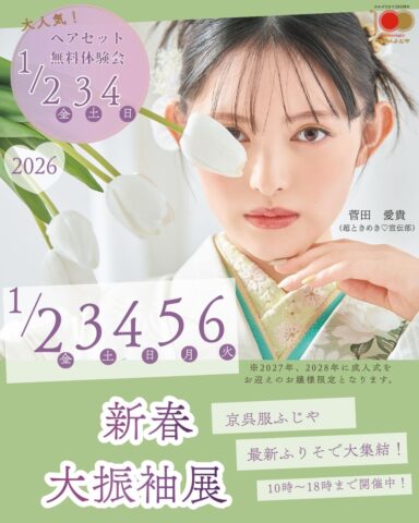 👘最新のお振袖大集合👘 投稿日 2026年1月4日 著者 staff-all ニュース・イベントカテゴリー お知らせ 2026年お正月!『京呉服ふじや』に最新振袖が大集合中です! 超最新の振袖小物も盛りだくさんご用意して皆様のご来店をお待ちしております✋ お振袖選びやお着物のご相談は24時間対応のweb予約がおすすめです!